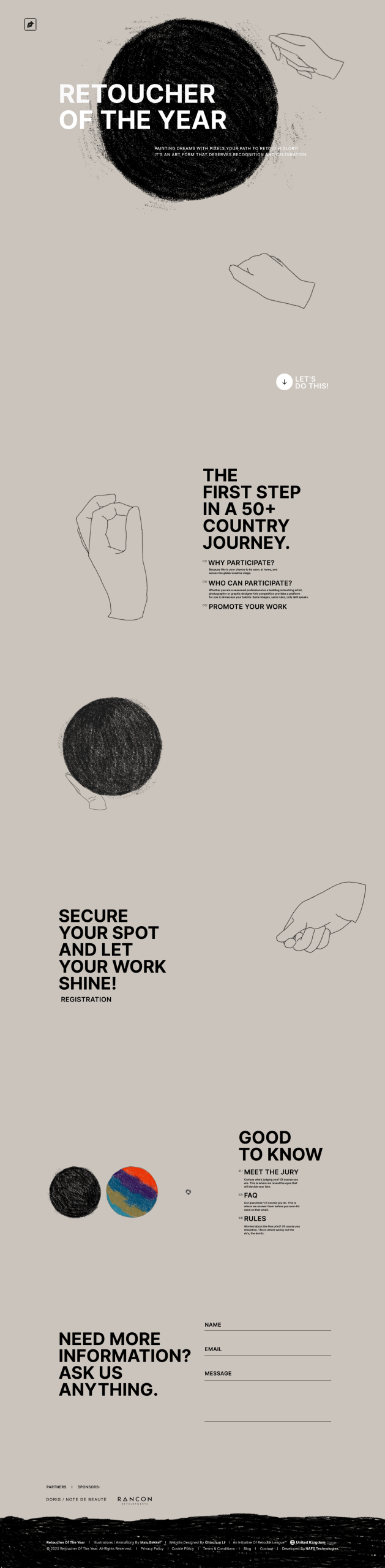 Retoucher of the Year is the world’s first international competition dedicated entirely to the art and craft of retouching. Born in Europe and expanded worldwide, the contest runs national competitions across 50+ countries and regions. The client came to us with polished design and clear contest rules; they needed a robust web platform that handled country selection, paid multi-category registration, assignment delivery, jury workflows, and dynamic reporting — while keeping contestants, jurors, and admins in sync.